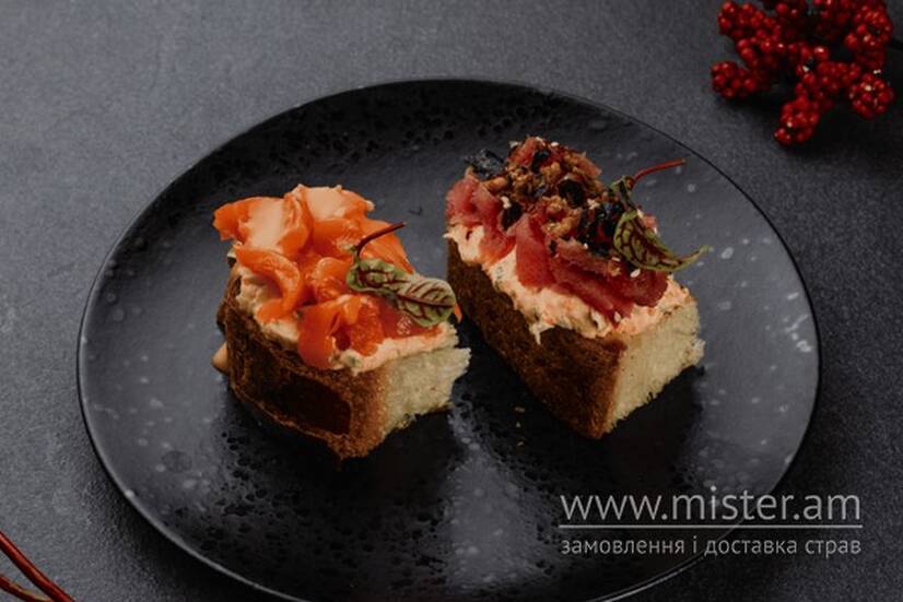 М`який хліб бріош обсмажуємо на вершковому маслі. Зверху викладаємо ніжний тунець та крем масаго, доповнюємо пікантним соусом WOK-Chili.