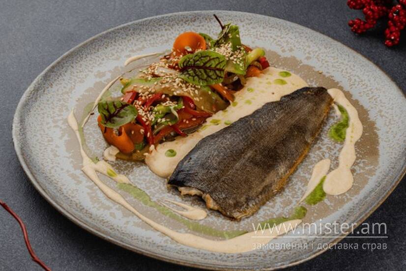 Yoki restaurant Філе форелі з овочами WOK та вершково-лаймовим соусом