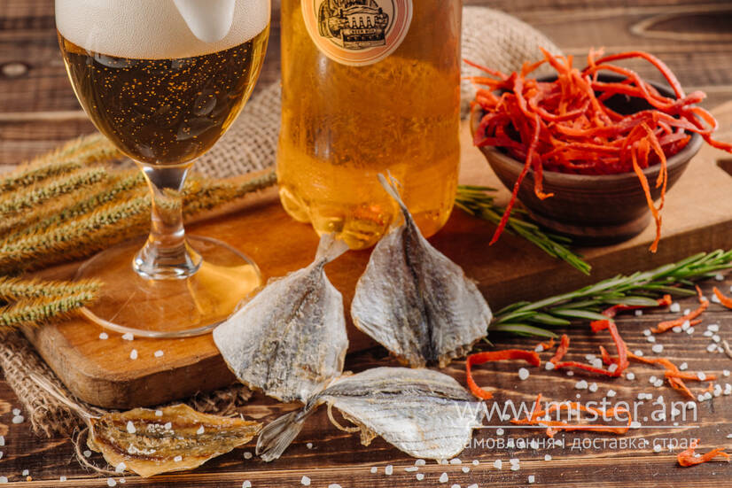Закуски рибні: Лящ, Філе щуки з перцем, Філе щуки, Стружка краба, Кальмар павутинка, Кальмар перуанський, Кільця кальмара копчені, Ікра плотви, Плотва, Янтарна з перцем, Стружка кальмара, Анчоус, Щука, Окунь, Стружка тунця, Судак, Ікряники, Ікра плотви, Плотва ікряна