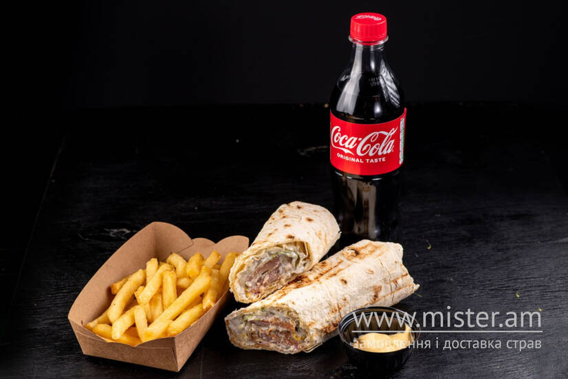 Кебаб з куркою M, Кола 0.33, картопля фрі, соус на вибір.