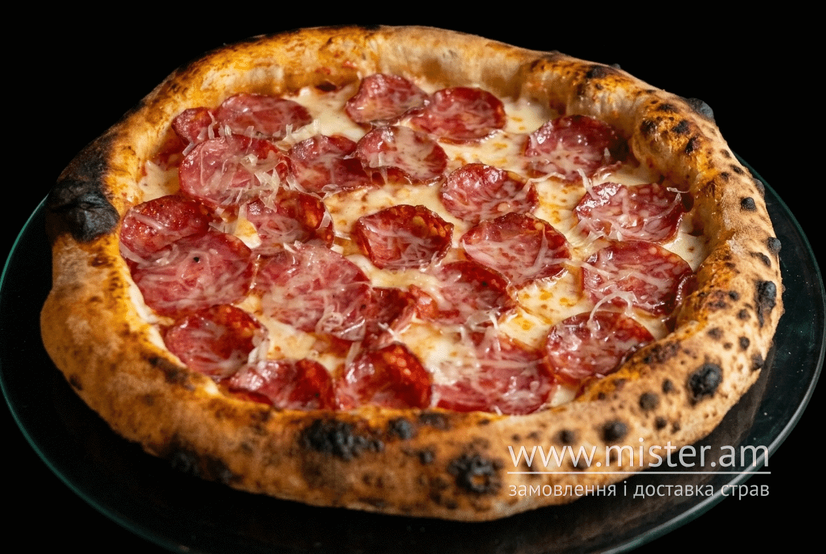 Ферментоване тісто на заквасці, фірмовий томатний соус, моцарела, салямі, пармезан