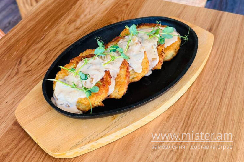 Деруни з грибним соусом