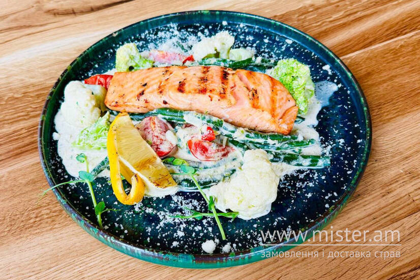 Філе лосося на подушці з овочами