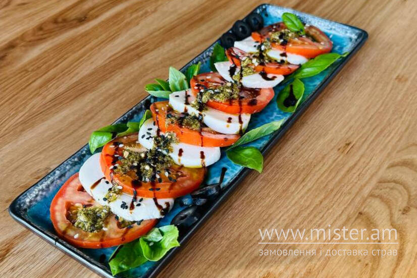 Помідор, моцарела, соус.