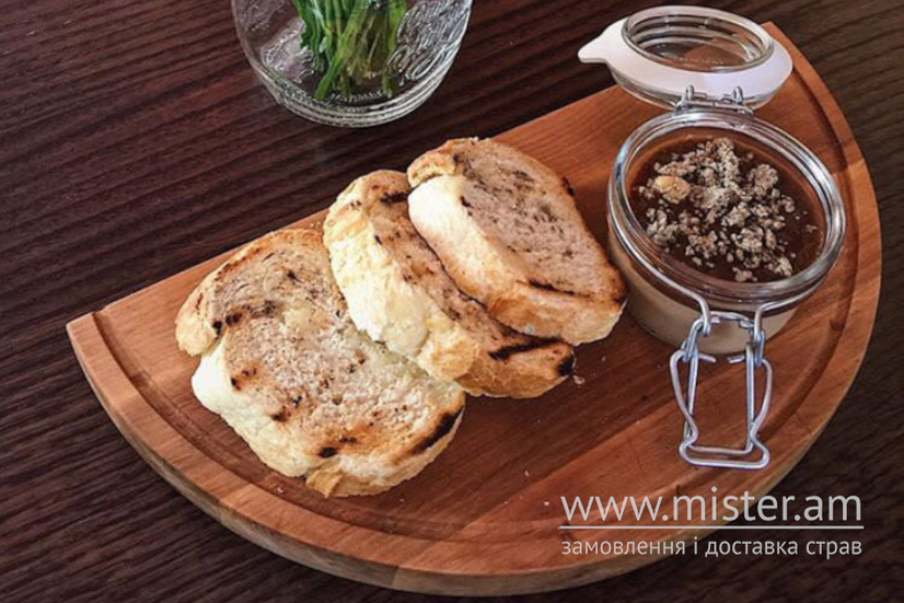Із курячих сердець в поєднанні з сливовим джемом і халвою.