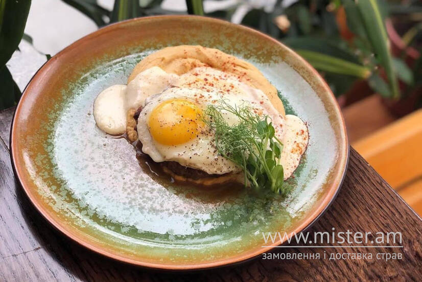 з аджикою, сиром лабне, маринованою цибулею та хумусом.