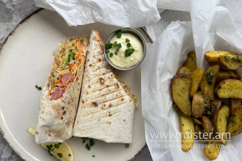 Хот-дог в лаваші з сосискою