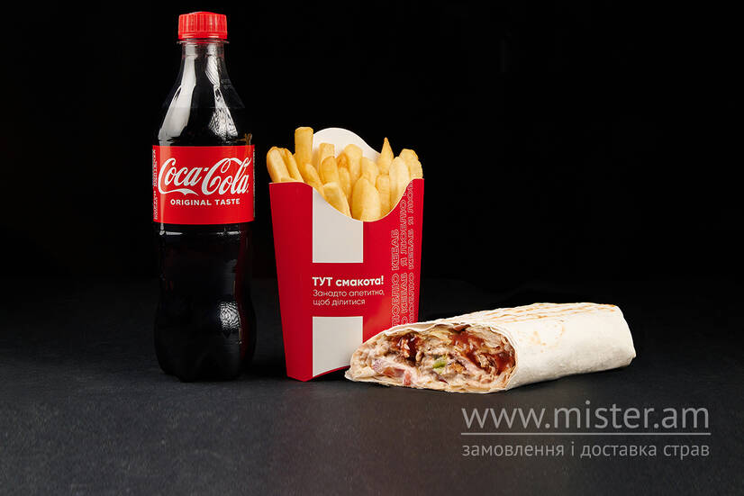 Кебаб "America", картопля фрі L, вода в асортименті.