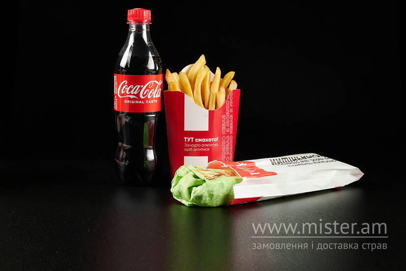 Кебаб "Vegetarian", картопля фрі L, вода в асортименті.