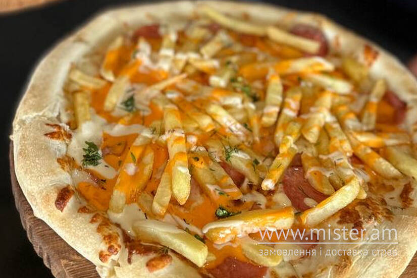 Соус айолі, бекон, салямі, картопля фрі, сирний соус чеддер.