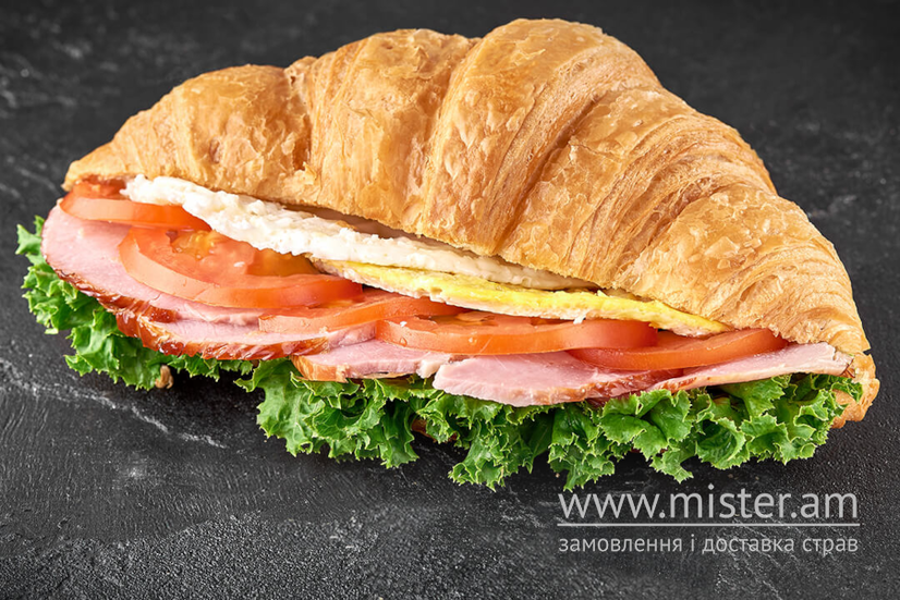 Круасан, сир філадельфія, шинка, помідор, салат, яєчня, соус класичний.