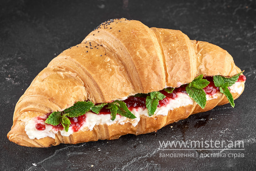 Круасан, вершковий крем, джем малина, м'ята, цукрова пудра.