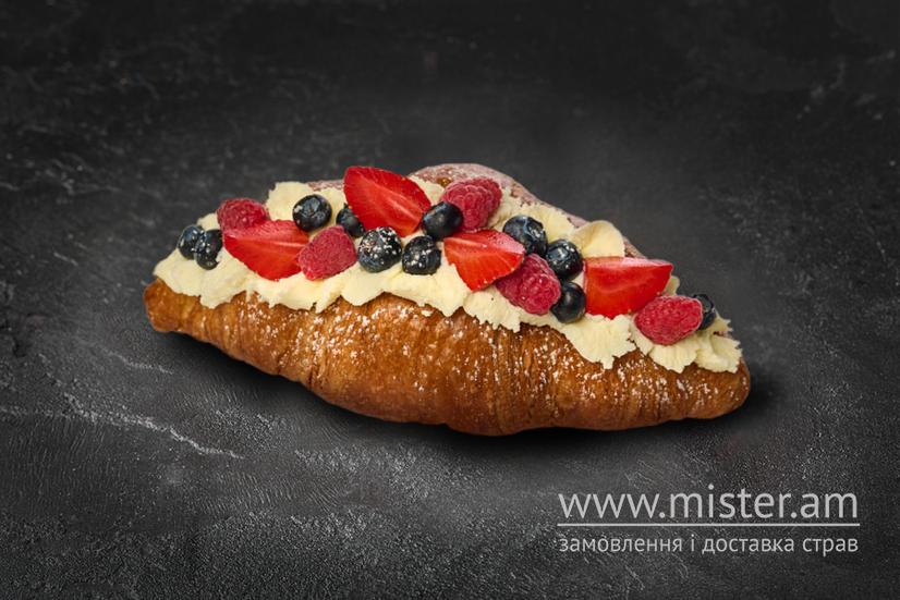 Круасан Масляний, крем Маскарпоне, полуниця, лохина, цукрова пудра.