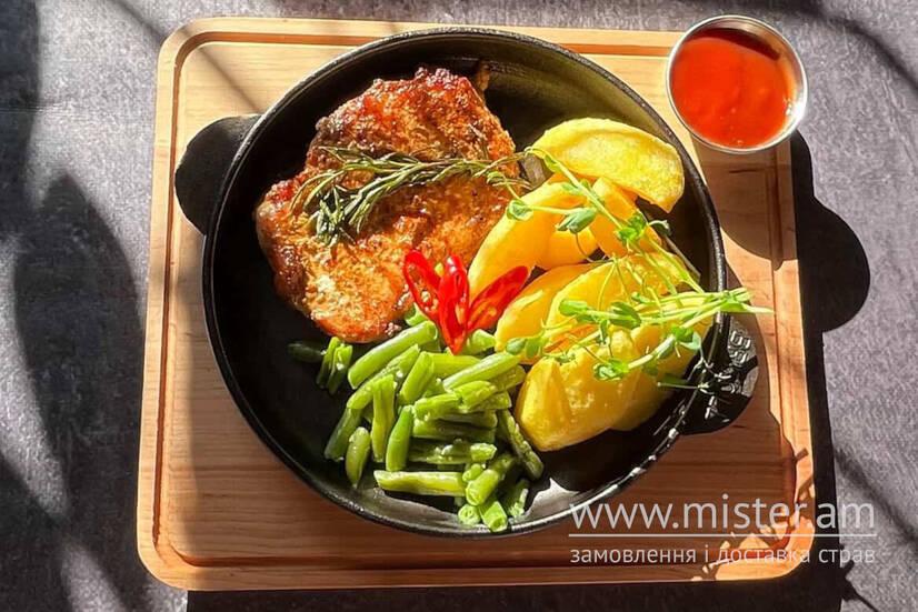 картопля по-селянськи, шпарагова квасоля, кетчуп