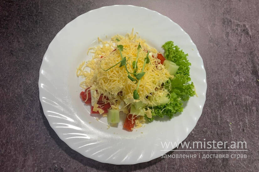 помідор, огірок, болгарський перець, сир, майонез.