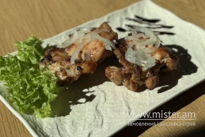 Соковите куряче бедро, обсмажене до золотистої хрусткої скоринки, що зберігає всі соки всередині. На мангалі воно набирає аромату диму, підкресленого легким маринадом, і кожен шматочок розкривається ніжним, м'ясистим смаком з приємною хрусткістю зовні.