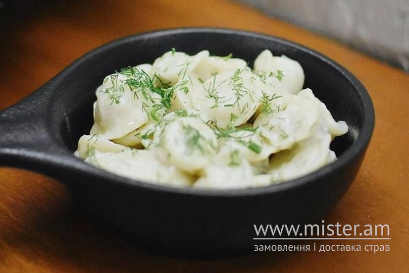 Пельмені власного виробництва, щедро заправлені ароматним розтопленим маслом.