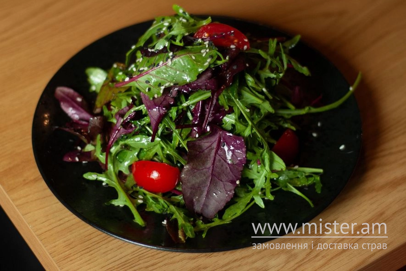 Ароматне поєднання соковитої печінки, маринованого ананасу та свіжих помідорів чері, доповнене міксом салату та хрустким кунжутом. Заправлений фірмовою соусною заправкою.
