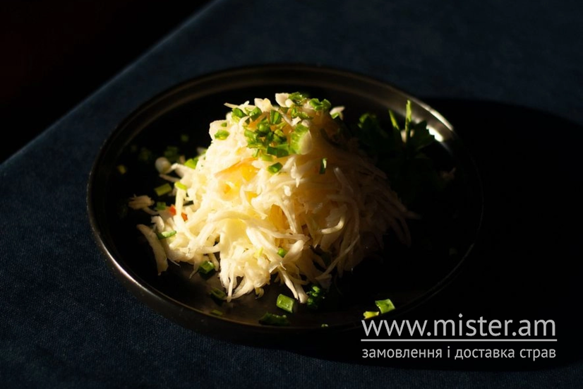 Легкий салат з капусти, моркви та цибулі, заправлений олією.