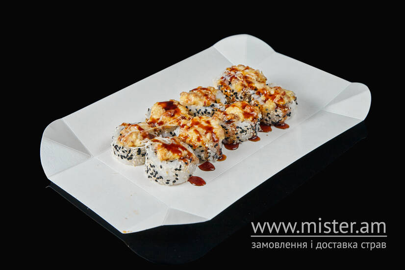 з вугрем, салатом айсберг, крем-сиром, кунжутом та унагі