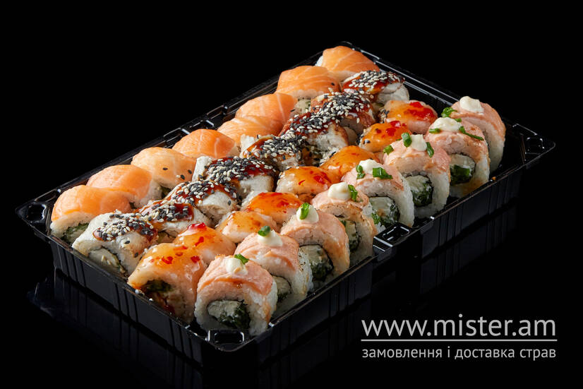 Філадельфія з лососем, філадельфія з вугрем, філа з запеченою куркою, філадельфія гриль.