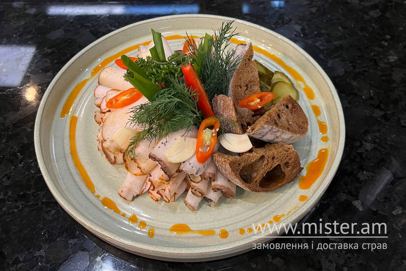 Tarantino family Асорті маринованого сала з соленим огірком та грінками