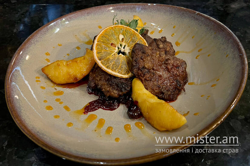 Tarantino family Теляча печінка з яблуком та карамелізованою цибулею