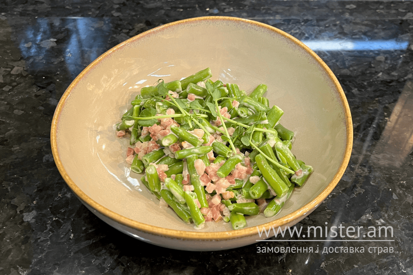Стручкова квасоля з беконом у вершках