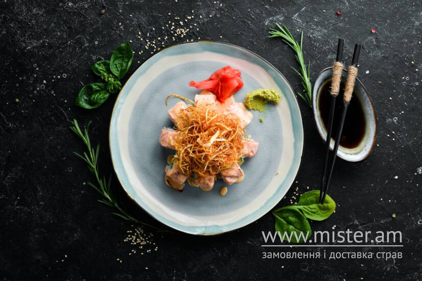 Tarantino Рол Тарантіно з обпаленим лососем і селеровими кріспами