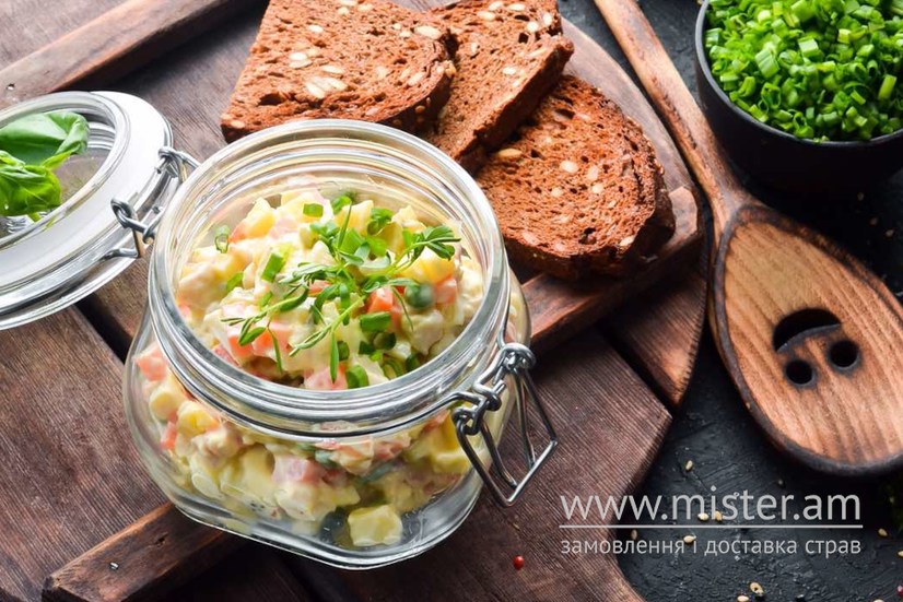 Салати: Салат Грецький, Салат Цезар з куркою та беконом, Салат ВВQ з яловичиною, Салат Мисливський, Салат Філадельфія з курячою печінкою, Салат Теплий з телятиною та фетою, Салат з баклажану, Салат Нісуаз, Салат Цезар з телятиною, Салат Цезар з лососем, Салат Цезар з креветками, Салат Шуба, Салат ВВQ з куркою, Салат Королівський, Свіжа салатка з хрумкої капусти і моркви, Салат з яловичиною та корінцем салери, Салат з морепродуктами, Салат Вінігрет, Салат М'ясний , Салат із сирка