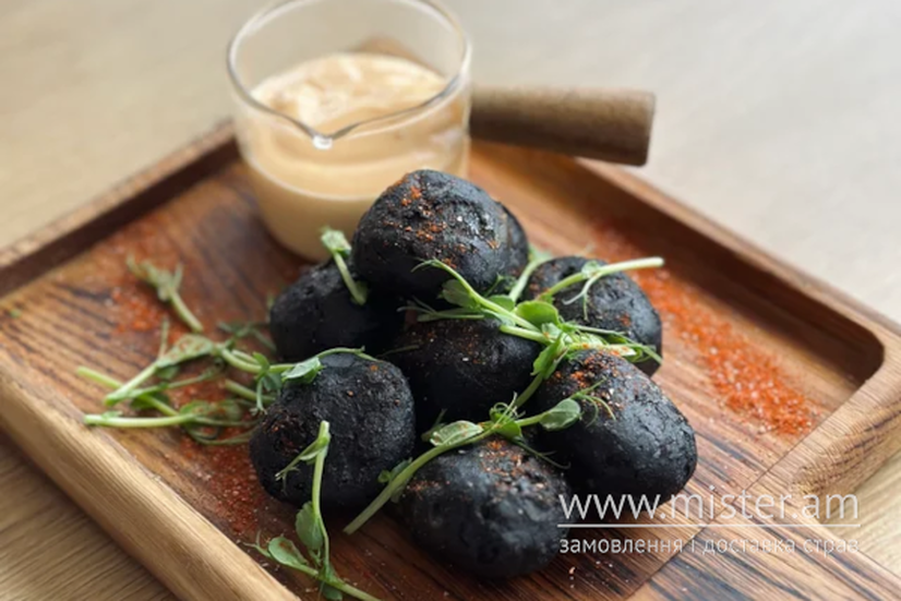 Гострі сирні кульки чедер з подаються з соусом тар-тар.