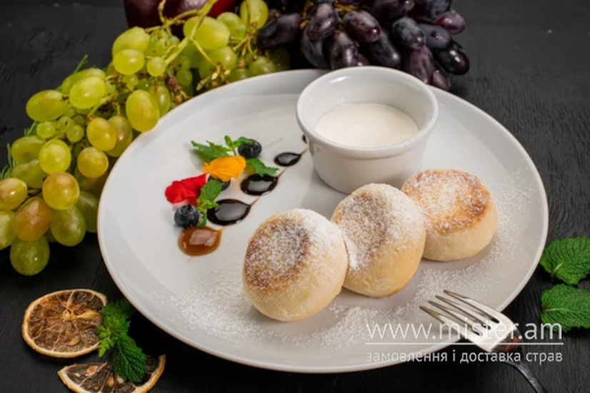 Сирники з ягідним соусом та сметаною