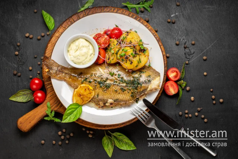 Дорадо з печеною картоплею та соусом тартар