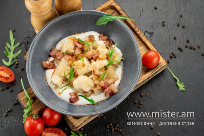 Тушкована капуста з копченими ковбасками та картопляним пюре