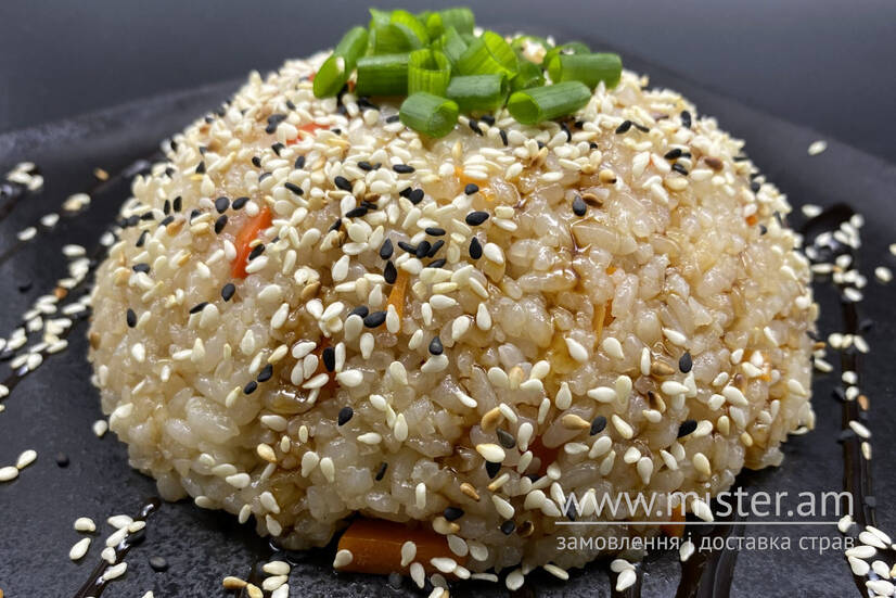 Рис, болгарський перець, кунжут, зелена цибуля, морква, сир тофу, Унагі соус.