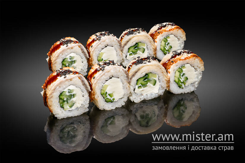 Рис, сир філадельфія, огірок, вугор.