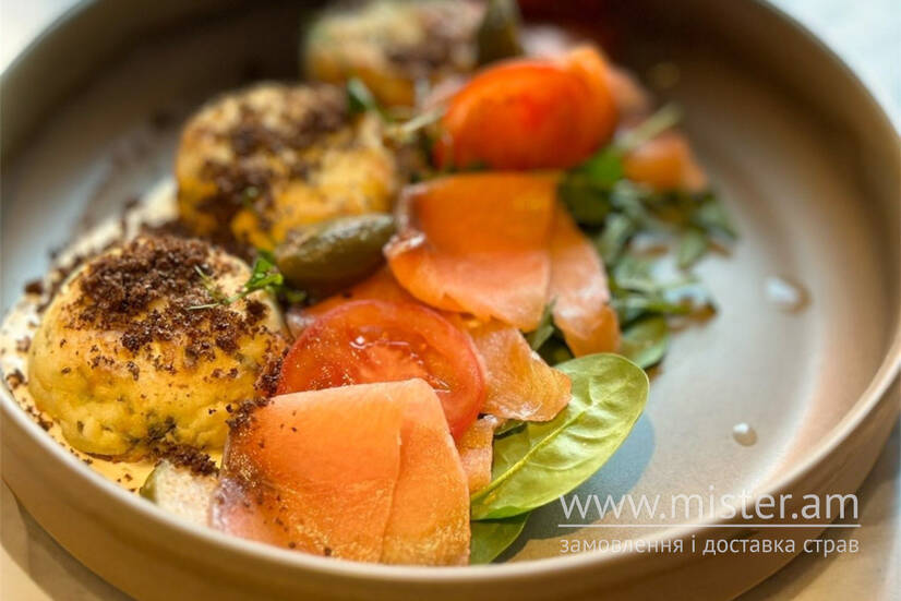 Сирні нагетси чеддер з перцем, курячі нагетси, морський окунь в паніровці, картопля по-селянськи, картопля фрі, чіпси з лаваша, подається з часниковим соусом та соус BBQ.