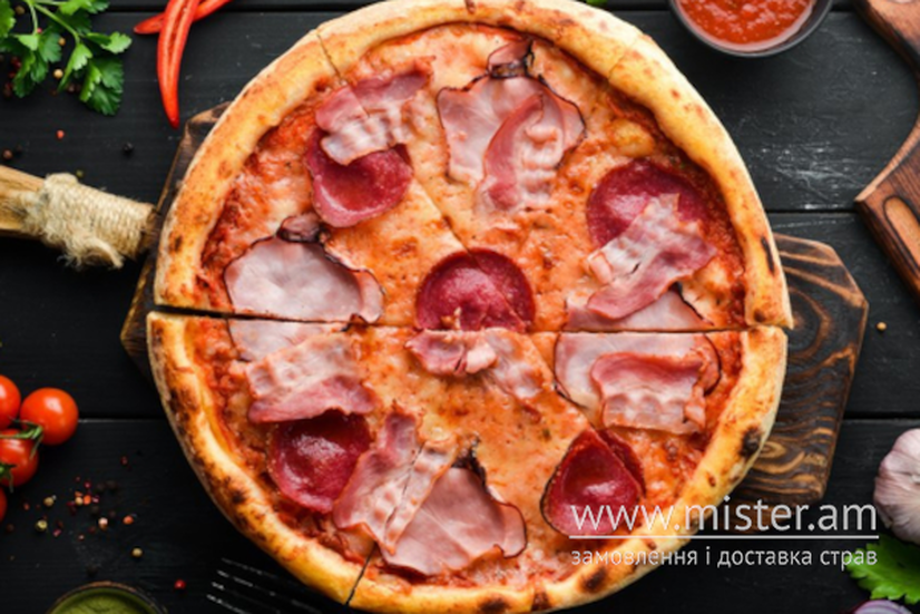 Італійські томати, моцарела, шинка, бекон, салямі.