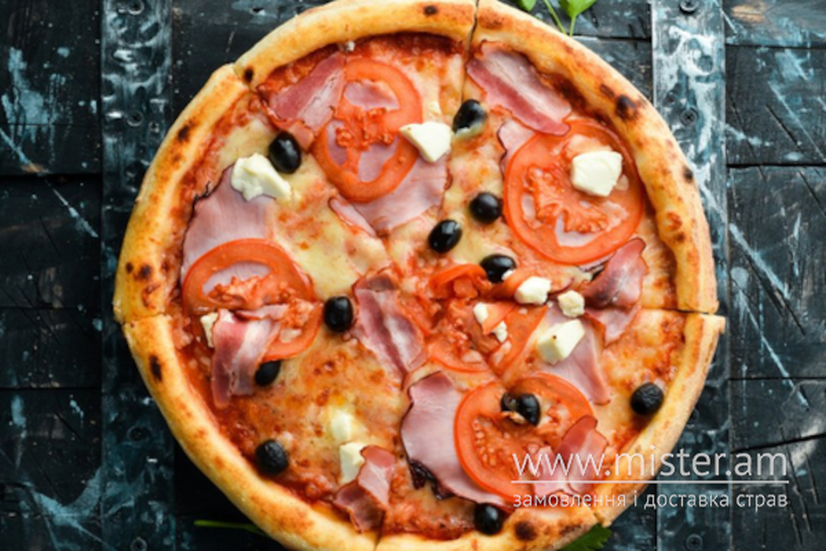 Італійські томати, моцарела, шинка, бекон, помідор, сир фета, оливки.