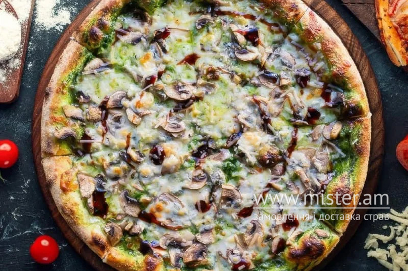 Вершкова основа, сир моцарела, шпинат, печериці, сир горгонзола, сир пармезан, часник 420 г.