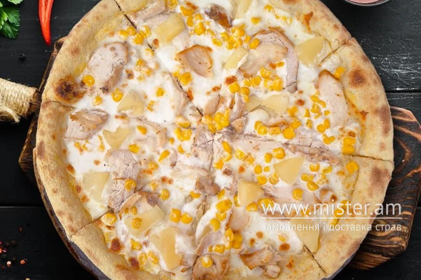 Вершкова основа, сир моцарела, філе курки, кукурудза, ананас, 600 г.