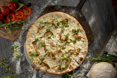 Вершкова основа, сир моцарела, гливи мариновані, мікрогріни, оливкова олія.