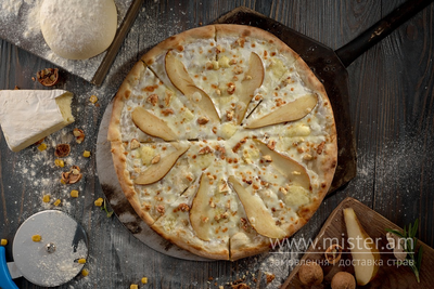 Вершкова основа, сир моцарела, грушка в меді, грецький горіх, брі.