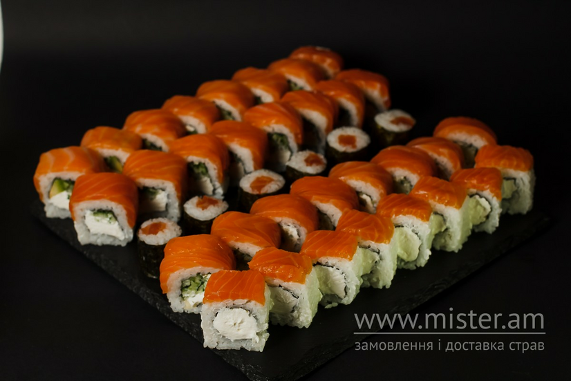 Філадельфія класична, Філадельфія лайт, Філадельфія з креветкою, Філадельфія чіз, Макі з лососем.