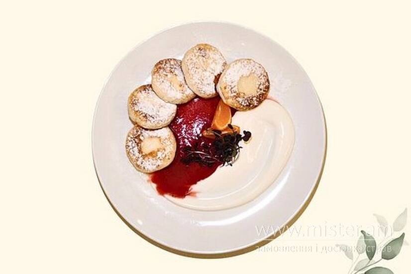 Сирники домашні з медом, джемом та сметаною