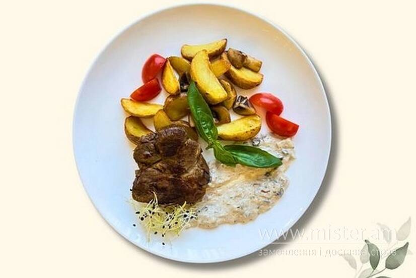 Maria Garden Стейк з ошийка з печеною картоплею та грибним жульєном