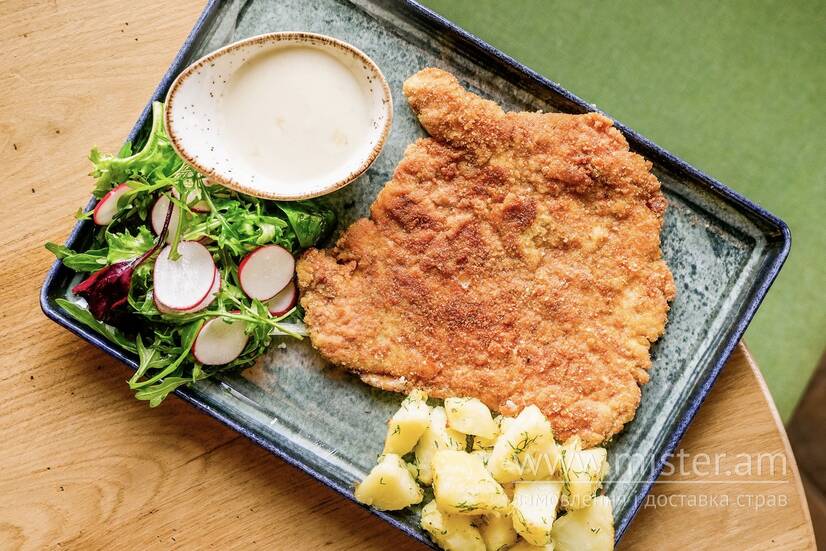 З сирним соусом та молодою картоплею.