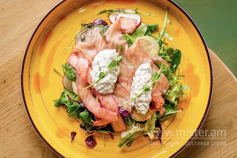 Зелений салат з лососем