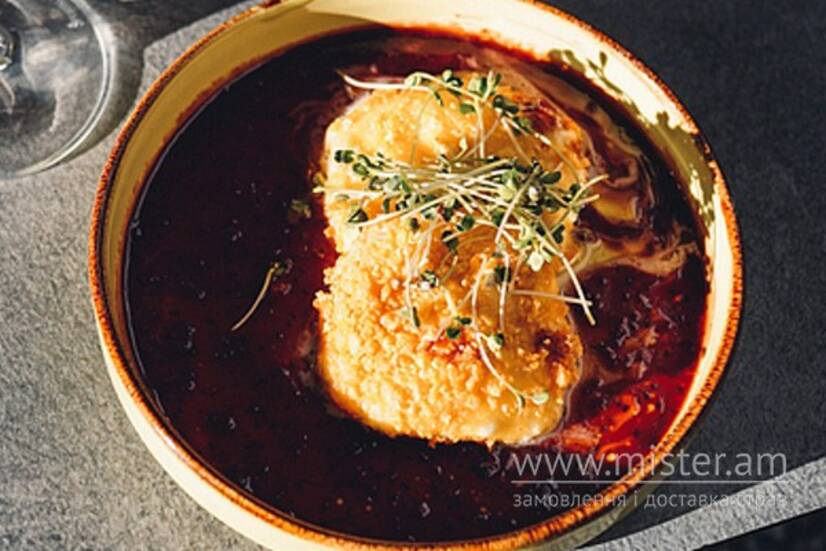 Сир моцарелла, пластівці кукурудзяні, соус журавлинний.