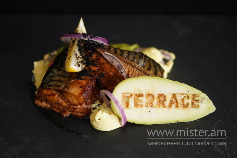Terrace Філе скумбрії гарячого копчення на подушці з пюре зеленого горошку